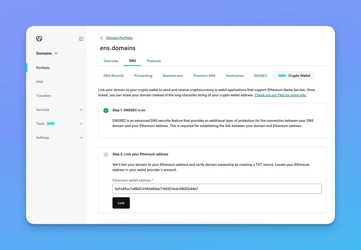 Starting today, GoDaddy has a NEW section in their domain management interface called "Crypto Wallet" ✨