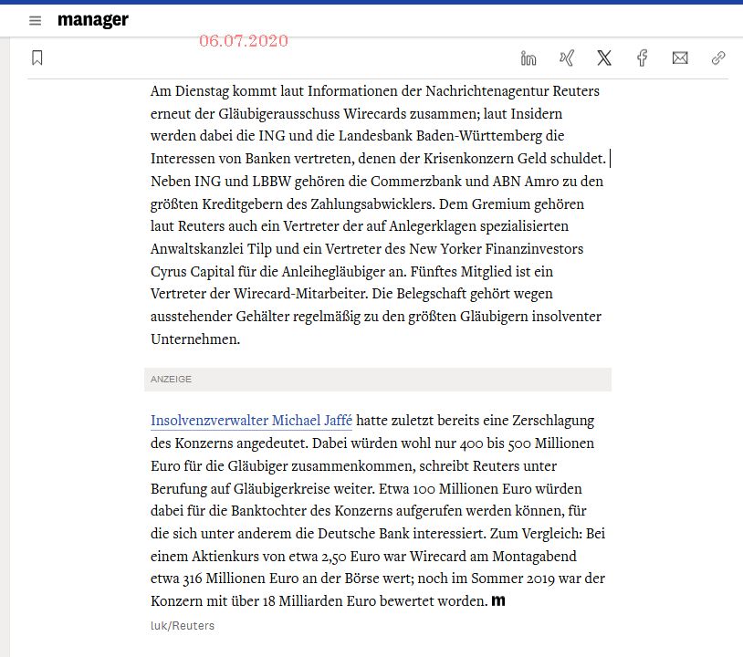 @OlafStorbeck @thkrausslach @AlfredDierlamm "Last week, Deutsche Bank said it was willing to provide financial support to Wirecard Bank, which so far is not part of the insolvency proceedings."
