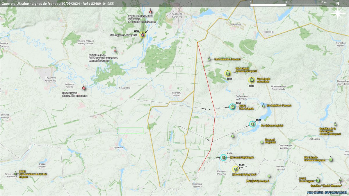 Dans la direction de #Koursk et dans l’axe de #Snagost, le 51e rég aéroporté 🇷🇺 (106e div aér), fraîchement transféré avec armes et blindés du secteur de #Siversk (secteur 3), a lancé une contre-attaque surprise👇
