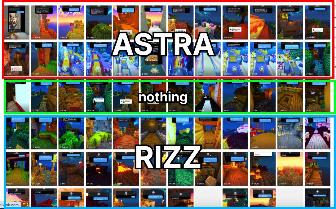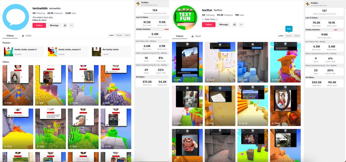 1. They’re all made by the same developer (although RIZZ seems to be from a different one), or 2. They’re buying those from some on-demand service (pay-per-video), or 3. Those accounts are run by independent "creators" (hustlers) or 4. ?
