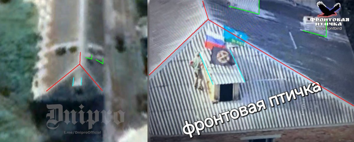Russian sources claim this is the Russian flag, planted on top of a building in Snagost', Kursk region by units of the 51st Guards Airborne Regiment. Image is not geolocated so it cannot be determined whether this is true or not.