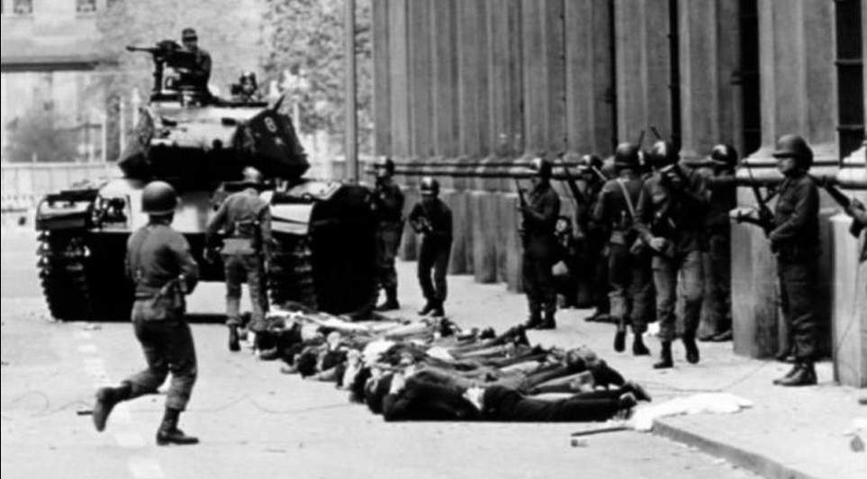 E poi i caccia Hawker Hunter di fabbricazione britannica con bombe incendiarie sul Palacio de la Moneda, dove aveva sede il governo democratico di Salvador Allende.