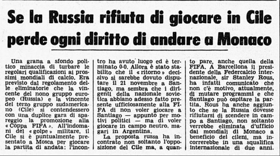 Uno spareggio tra noi e l’URSS che avrebbe consentito al Cile di andare ai mondiali di Germania del 1974.