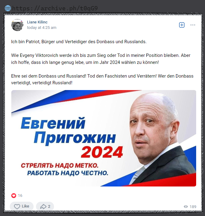 Kilinc finanziert mit Spenden in 🇷🇺 Lieferungen u.a. an 🇷🇺 Soldaten, kooperiert dabei mit Rechtsextremisten und wünscht sich die Vernichtung der Ukraine.