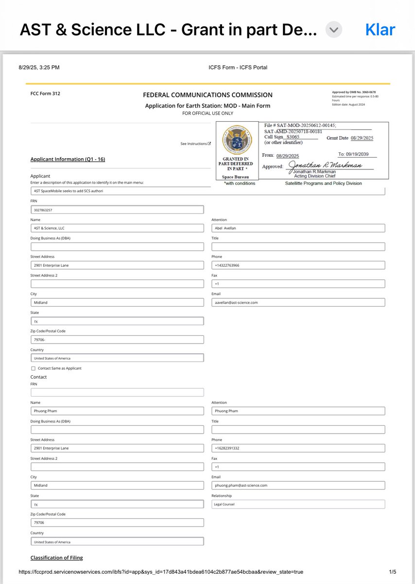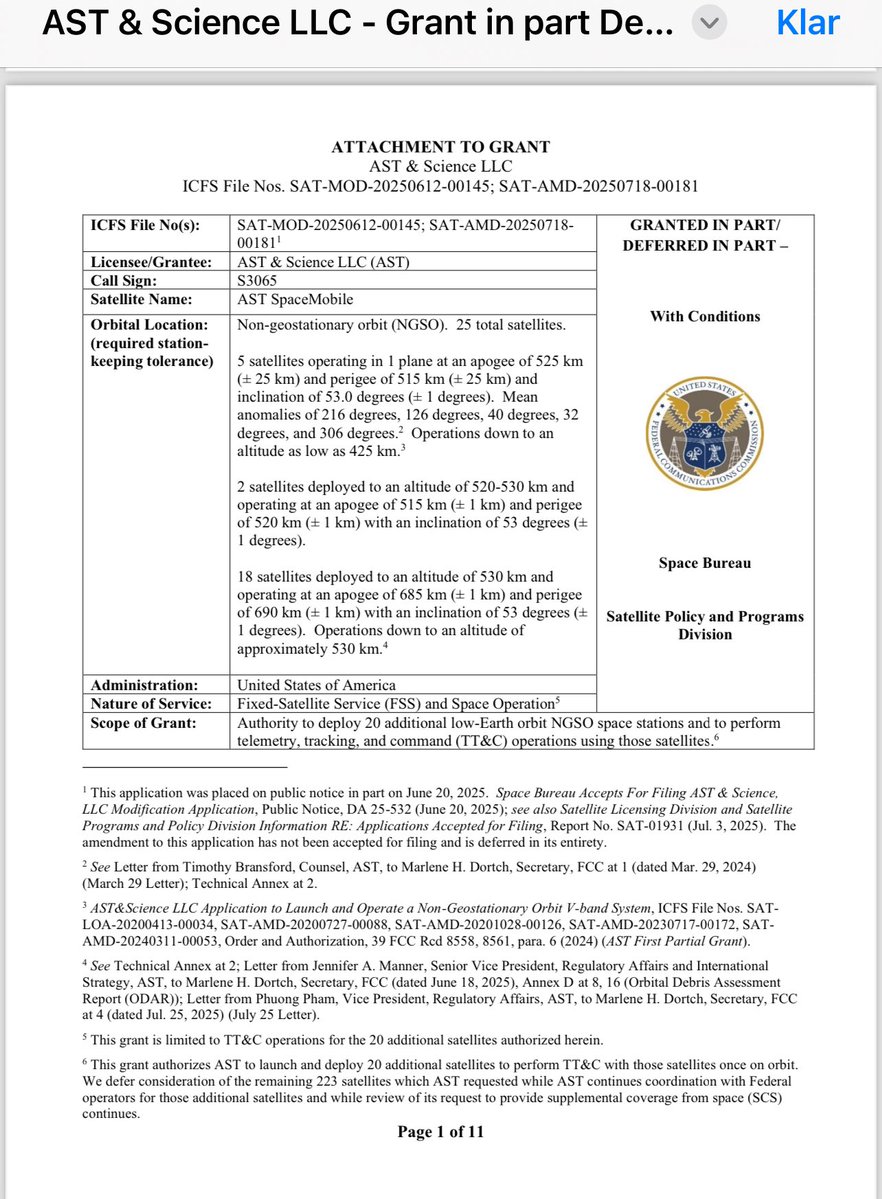 $ASTS has asked authority to launch full constellation beyond 25 satellites.