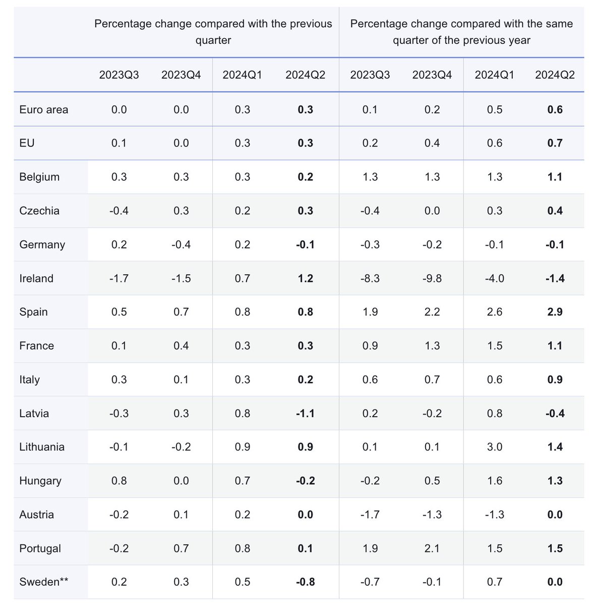 🇫🇷 La Francia fa poco meglio di noi: +0,3% e +1,1%.