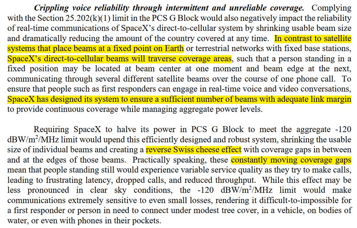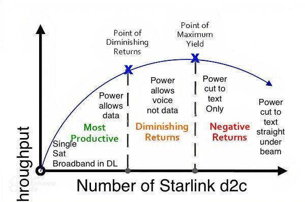 And so the massive spamming of each new Starlink d2c into adjacent channels they aren’t supposed to emit in forces Starlink to turn down power of every satellite on orbit as they launch more.