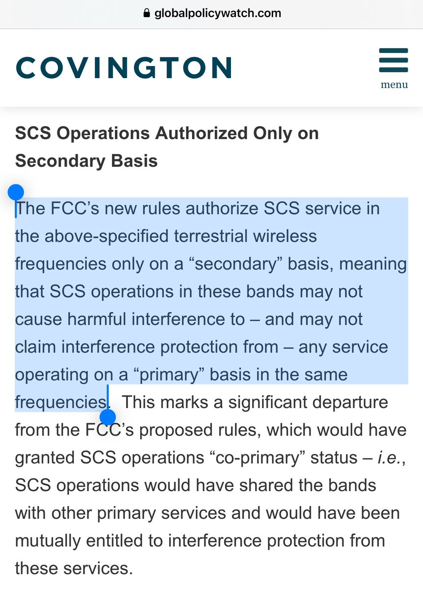 AST showed their system doesn’t cause interference. ASTS design criteria since 2018. 2/n