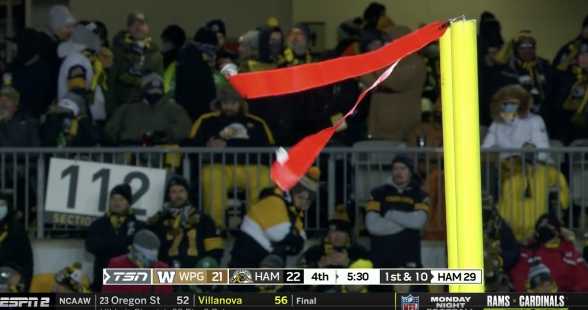 5 minutes left. The score is 22-21. Winnipeg can tie the game with a rouge!