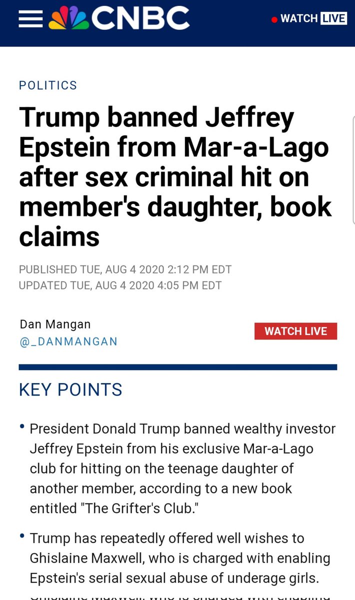 Trump a bien utilisé l'avion d'Epstein, ce n'est pas nouveau. Par contre nous sommes étonnés qu'aucun media n'a mentionné que dès que Trump avait découvert qu'Epstein était un pédophile, il l'a viré de Mar-a-Lago et a coupé tous les liens avec lui, mais bien sûr, les médias anti Trump ne vous l'ont pas mentionné.