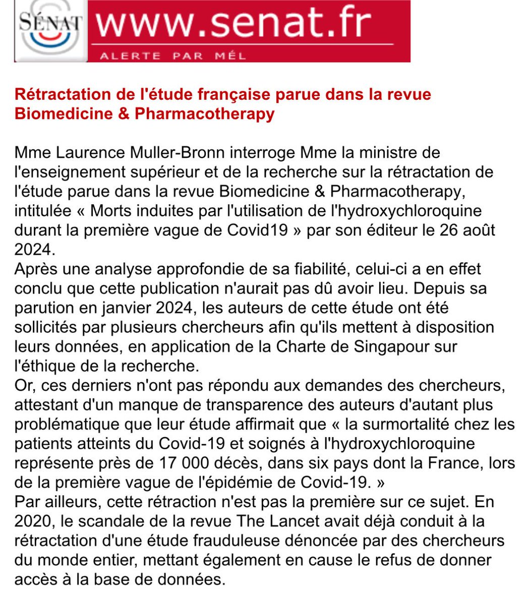 Rappelons que cette étude ainsi que d'autres fausses sciences ont été utilisées dans des lois (dérives sectaires), des rapports de la DGS (contre @france_soir), des conclusions au @Conseil_Etat. La fraude a donc été utilisé jusqu'au sein de la représentation nationale.