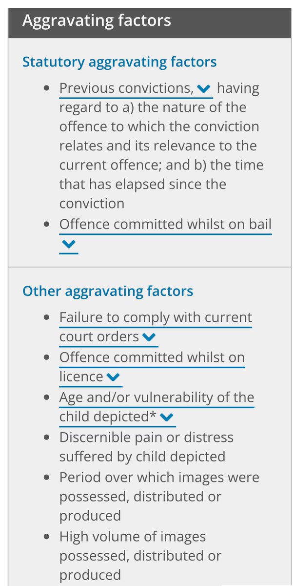 There are then lists of aggravating and mitigating factors, which can move that starting point up or down within the range: