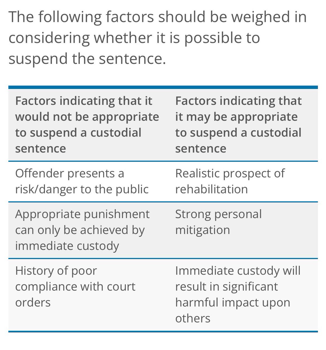 Any prison sentence of 2 years or less can be suspended. Under what circumstances? Yep, another Guideline I’m afraid, setting out factors for a court to consider.