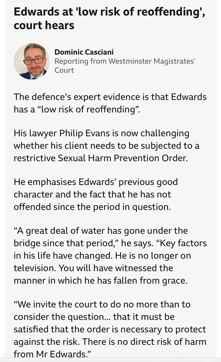In Edwards’ case, he had been assessed by Probation (as most offenders are prior to sentence). He was apparently a low risk of reoffending. It was argued that he had strong personal mitigation.