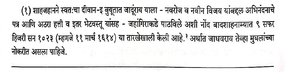 This is where confusion is created among readers. They often think that Lakhujirao Jadhavrao joined the Mughals in 1615-16, but they overlook the entry in the Badshahnama because it is not translated, and not every scholar can read Persian as precisely as G. B. Mehendale did here
