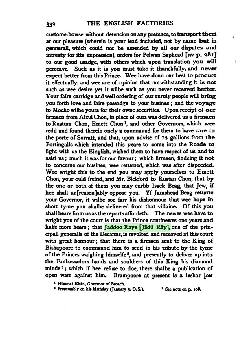 After this, there is an entry in English factory records stating that Lakhujirao Jadhavrao deserted Nizam and joined the Mughals during 1621, meaning he went to Nizam sometime between 26 February 1618 and 30 October 1621.