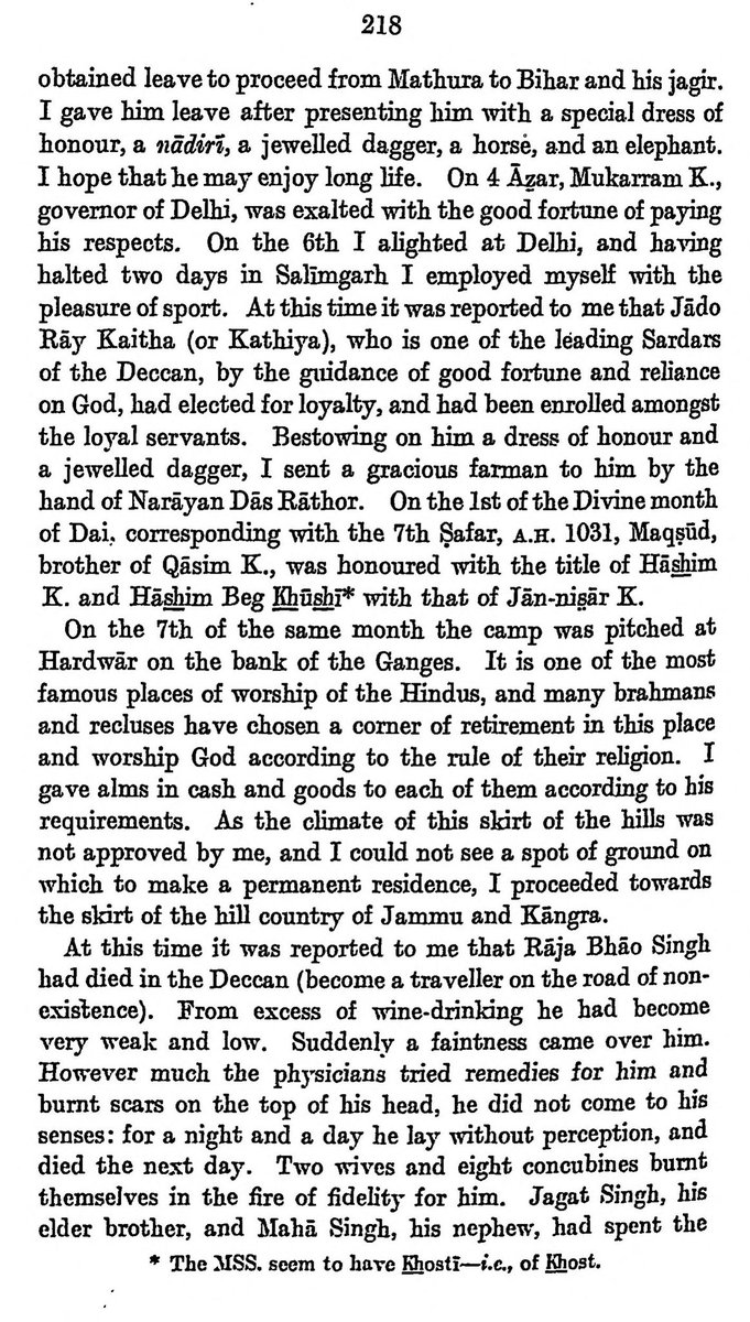 This fact is further confirmed by entries in Tuzuk-i-Jahangiri Vol 2 on 19 November 1621 and 12 December 1621.