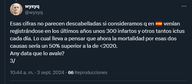 Esas cifras no parecen descabelladas si consideramos q en 🇪🇸 venían registrándose en los últimos años unos 300 infartos y otros tantos ictus cada día. Lo cual lleva a pensar que ahora la mortalidad por esas dos causas sería un 50% superior a la de <2020.