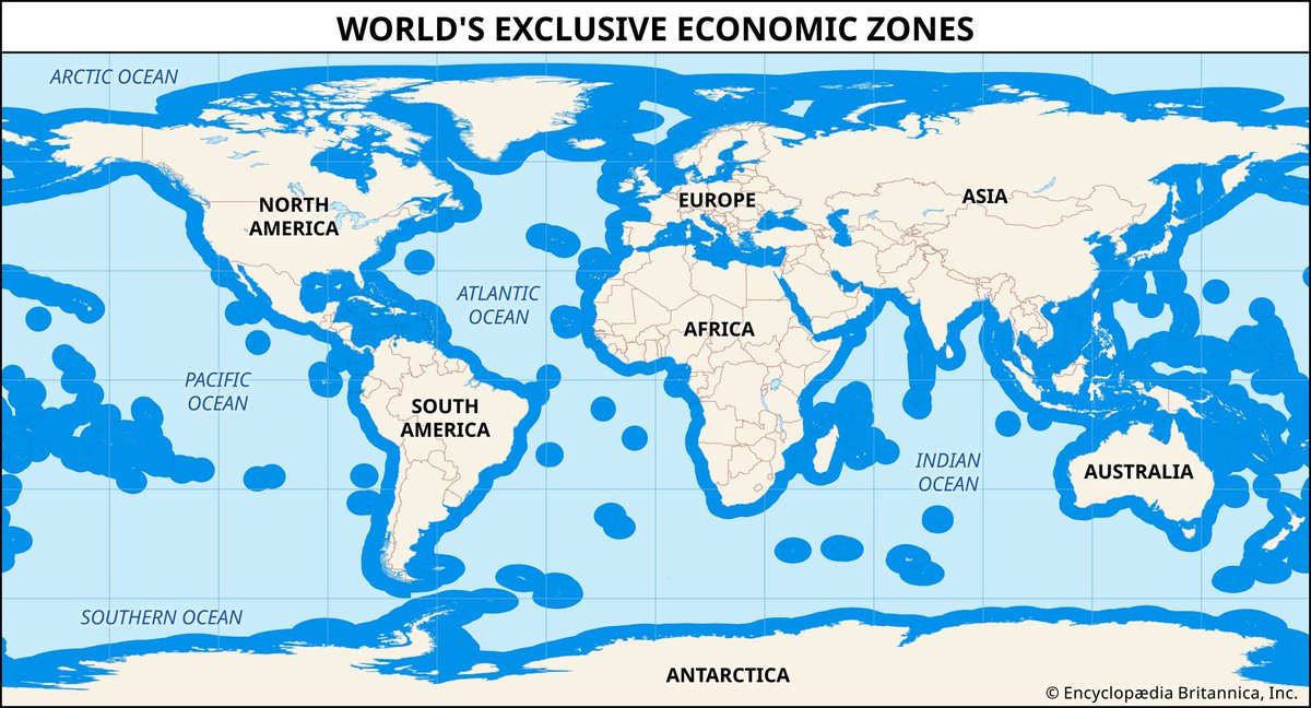 1/🧵 🌊 France has overseas territories found in all of the planet’s oceans & globally the largest exclusive economic zone totaling over 11.7 million km2. France owns 10% of the world’s exclusive economic zones while its land area is just 0.45% of Earth’s total land area. #France