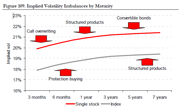 The implied volatility surface σimp(K,T), where K is the strike price and T is time to maturity, often exhibits supply-demand imbalances.