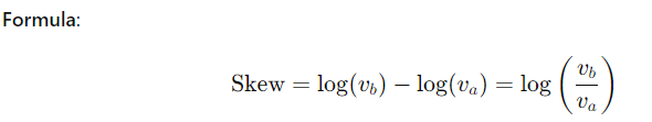 The skew is a measure of imbalance between the resting bid depth (volume of buy orders, vb) and the resting ask depth (volume of sell orders, va) at the top of the order book.