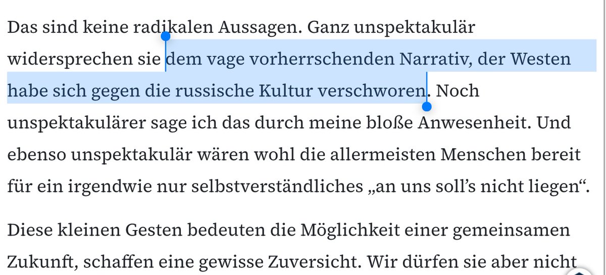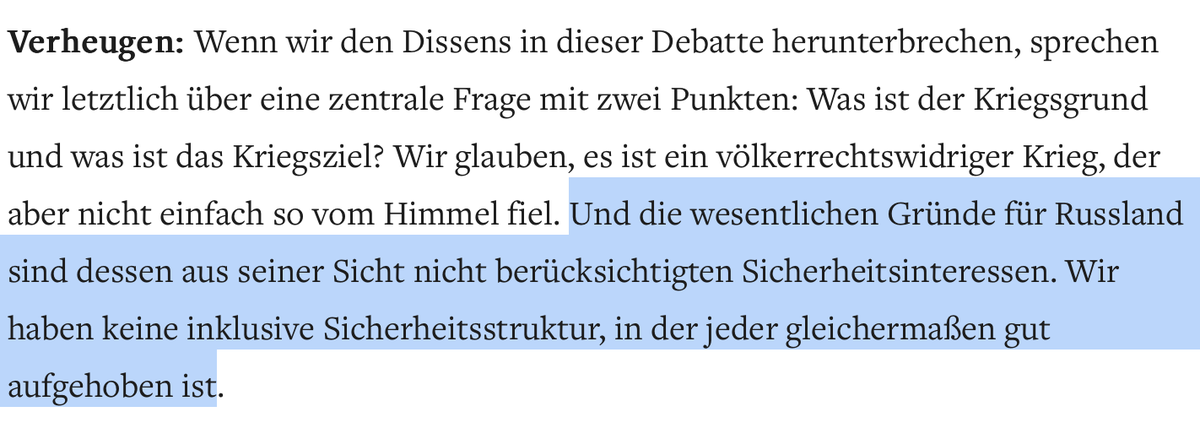 @welt Entscheidend für diese beiden ist ohnehin nicht die Ukraine: Notgedrungen gestehen sie ihr zu, dass sie das Recht habe, sich zu verteidigen - suggerieren aber, dass dieses Land sich doch besser opfern solle.