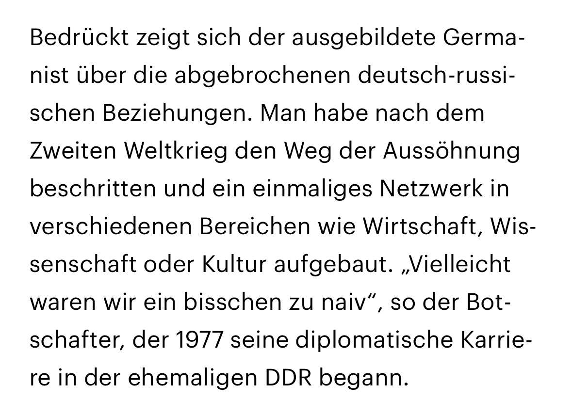 Dieses Interview von @moritzkuepper mit dem russischen Botschafter ist kein journalistisches Versagen mehr, sondern eine Selbstaufgabe und sollte von der Redaktion des @DLF … nun, ernsthaft besprochen werden. Schon dass Küpper zur Audienz in die Botschaft geht und ein Foto 1/