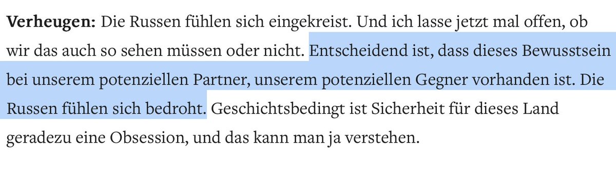 @welt Verheugen kommt jedenfalls mit dem Klassiker, der "gefühlten Bedrohung", die unseren "potentiellen Partner" - also die Eroberer, Mörder und Entführer tausender Kinder - spüren. Er könnte auch mal überlegen, wie sich Russland "geschichtsbedingt" bis an die Weichsel ausdehnte. 13/