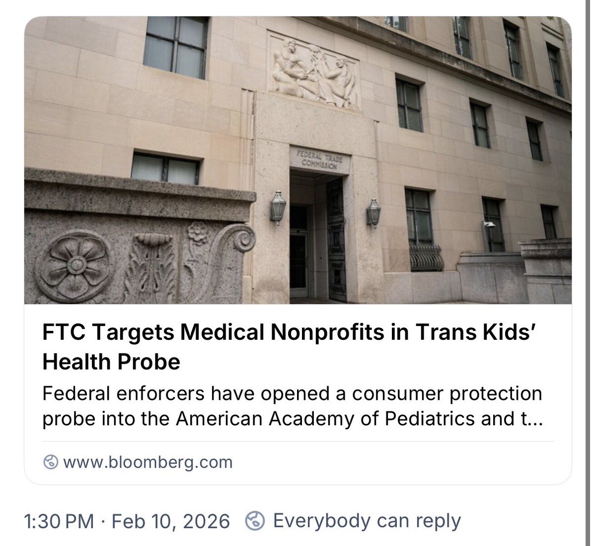 The Federal Trade Commission has opened a consumer protection probe into the American Academy of Pediatrics and has demanded its records regarding pediatric gender medicine.
