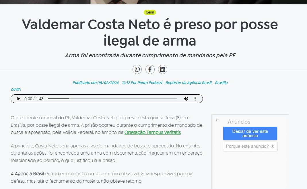 8. Valdemar Costa Neto afirmou em debate ser favorável a criação de um conselho de censura prévia.