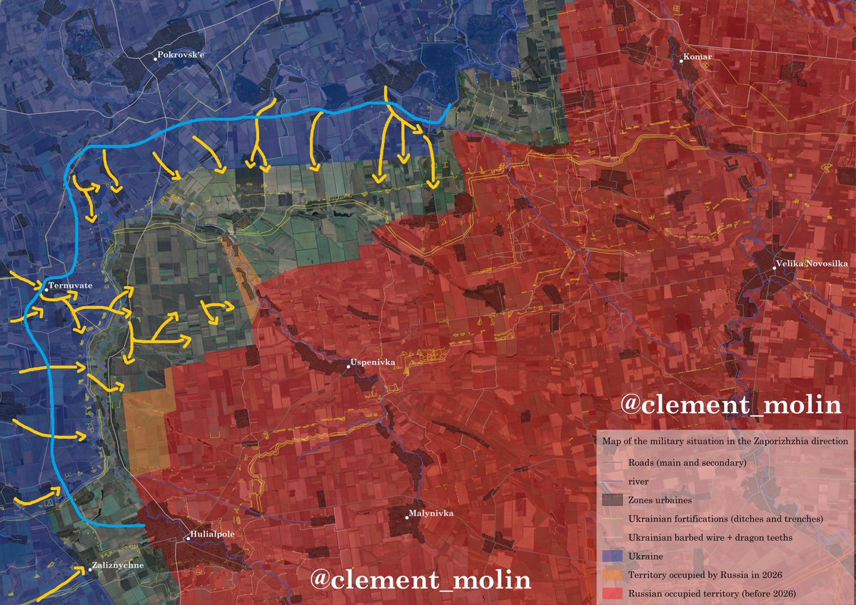 Profitant de la suspension de Starling à l'armée russe (qui permettait de faire voler les drones russes et de communiquer) et de Telegram, l'armée ukrainienne a lancé une série de contre-attaques locales dans le secteur de Ternuvate et Pokrovsk'e, à l'est de Zaporizhia.