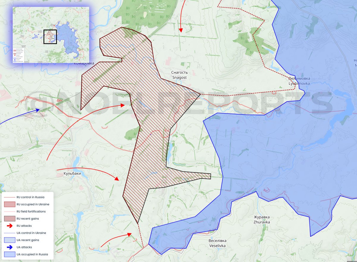 A bigger update. Due to recently published geolocated images, it can be assumed that Vishnevka and Apanasovka west of Snagost' and Vnezapnoe south of Snagost', are under Russian control. This all happened not in the last 24 hours, but over the past week.