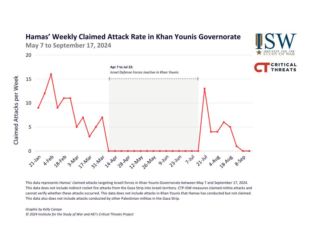 2/ Hamas remnants in Khan Younis and Rafah could rebuild under the right circumstances, despite the brigades’ defeat. Hamas’ other three brigades in central and northern Gaza are probably facing varying levels of degradation, but CTP-ISW is not prepared to assess their defeat.