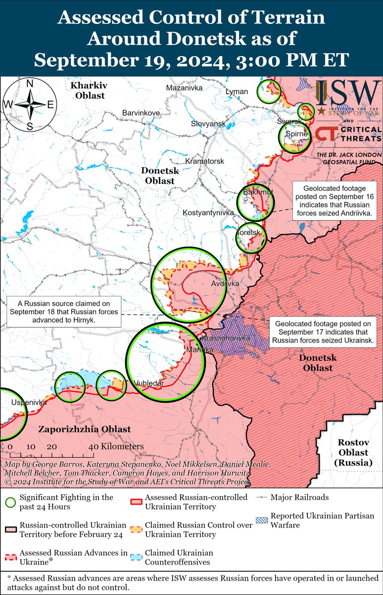 2/ Russian forces recently advanced southeast of Siversk amid continued assaults in the area on September 19.