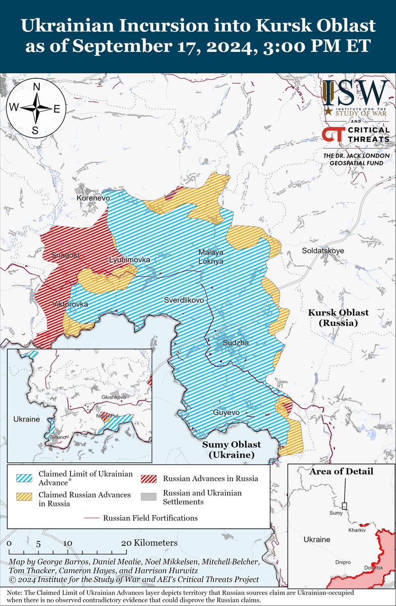 2/ The Guardian, citing Russian government and military documents that Ukrainian forces seized in Kursk Oblast, reported on September 20 that Russian forces stationed in Kursk Oblast repeatedly warned the Russian military command about the possibility of a Ukrainian incursion into Kursk Oblast beginning in late 2023.