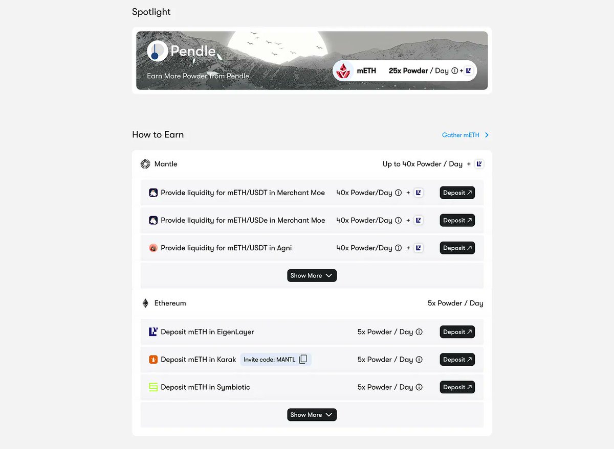 The key is to acquire some mETH (preferably on Mantle, as it earns more Powder per day) and then boost its rewards by participating in different DeFi activities.