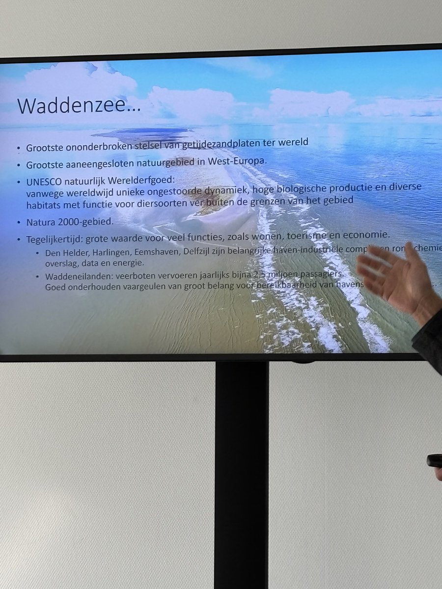 Nu krijgen we presentaties over de sluis, de werkzaamheden aan de Afsluitdijk, de vismigratierivier en - heel interessant! - de morfologie van het waddengebied: hoe de Nederlandse delta door de eeuwen is verandert en wat we daarmee moeten.