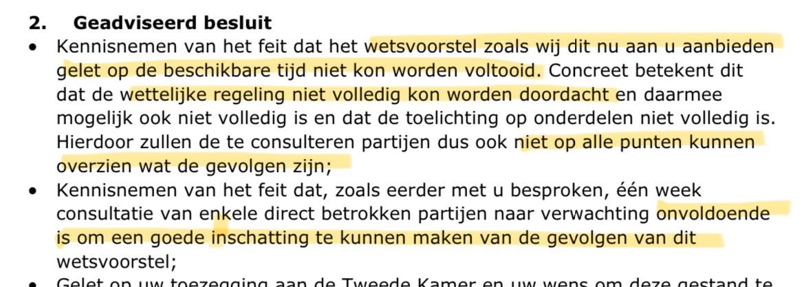 Het wetsvoorstel is niet af en kon niet volledig worden doordacht. Daarom kunnen we niet goed zien wat de gevolgen van het voorstel zullen zijn. 🧵