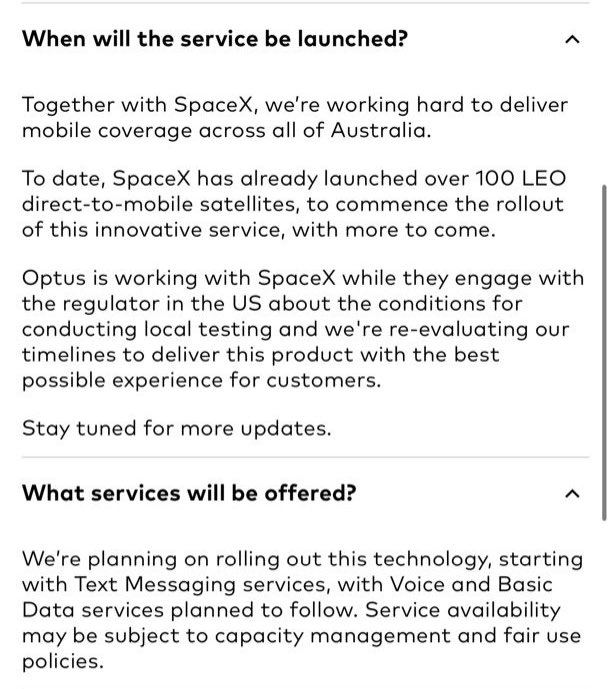 $ASTS: Starlink direct-to-cell MNO partners Optus (Australia) and One NZ (New Zealand) have both removed from their websites that service will start in late 2024 and left it open ended.