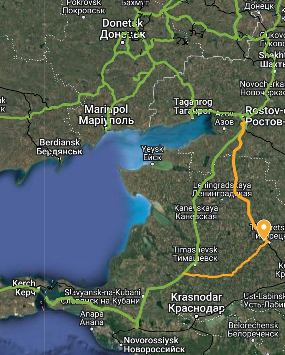 This depot also connected straight to the mainline can go either to Kerch and bring supplies into Crimea and then towards Kherson or go to Rostov and then towards Dontesk City and supply Pokrovsk Sector, continue along the Tzar train and supply the Zaporizhzhia front or hop on the new rail line at Burne and supply this sectors after stopping in Mariupol.