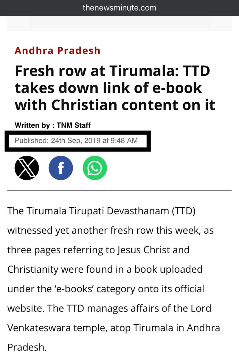 On this Saturday, read this thread on how @ysjagan imposed Christianity on Tirumala. Proofs attached 🧵