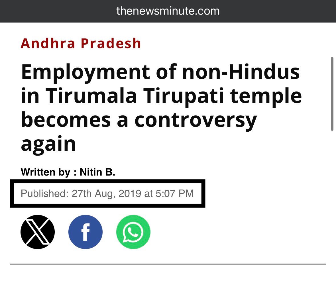 Christians were employed in TTD during Jagan’s rule. YV Reddy’s family are Christians so this naturally happened. Naidu recently vowed to remove non-Hindus