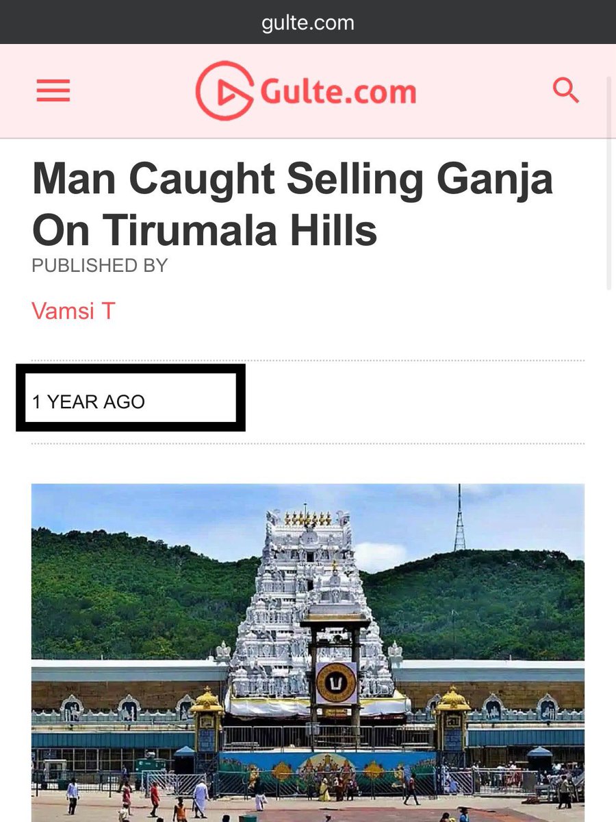 Local media outlets reported that Ganja peddlers were arrested in Tirumala