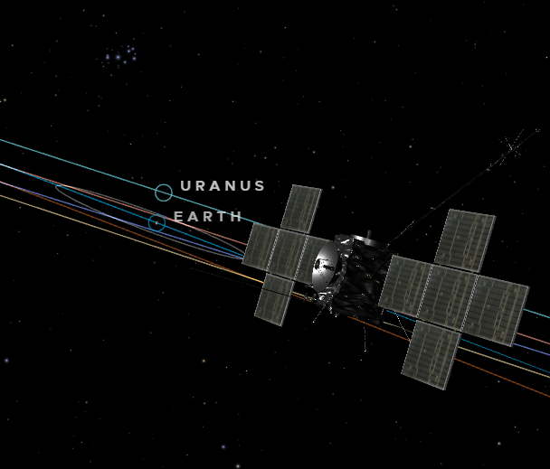 Pour l'instant la vue doit être fantastique vue de JUICE qui, le soleil dans les yeux, n'est pas en position de prendre des images. Ca viendra plus tard.