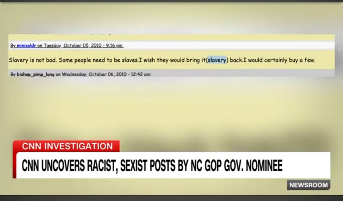 When news that Robinson had called himself a "black Nazi," claimed he routinely had sex with his wife's sister and peeped on women in public showers and said he wanted to reinstate slavery, @NCGOP leaders scrambled to support him. #ncpol #ncga