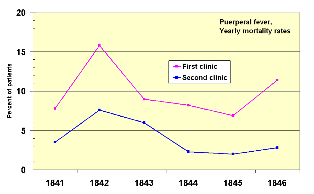 I śmiertelność porodowa na jednym z nich była o wiele większa niż na drugim. Kobiety zabijała tam gorączka połogowa i robiła to tak często, że oddział był traktowany jak "umieralnia". Pacjentki zgłaszające się do szpitala błagały lekarzy, by ich tam nie kierować.