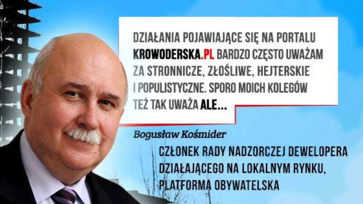 Pamiętam to dobrze, bo kiedy o tym pisywaliśmy na @Krowoderska_pl Pan Boguś zapałał do nas gorącym uczuciem, dzięki czemu przez długi czas mieliśmy na stronie fajne "cover photo" z najlepszym możliwym poleceniem. Kto bowiem może zapewnić lepszy certyfikat jakości dla skromnego osiedlowego bloga niż ktoś łączący rolę radnego z robotą dla dewelopera.
