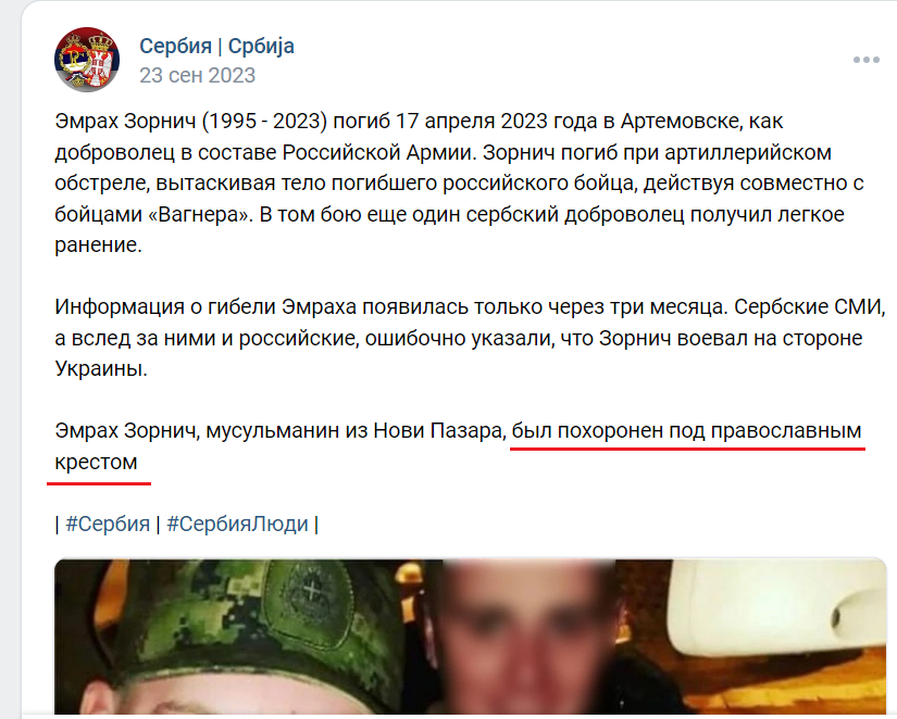 I also found a VK post stating that Zorniz was buried 'under an Orthodox cross.' When we were preparing this publication and reached out to Beric with our questions (including those about Zorniz’s funeral), the post was deleted (saved copy: ). archive.is/iXYq2