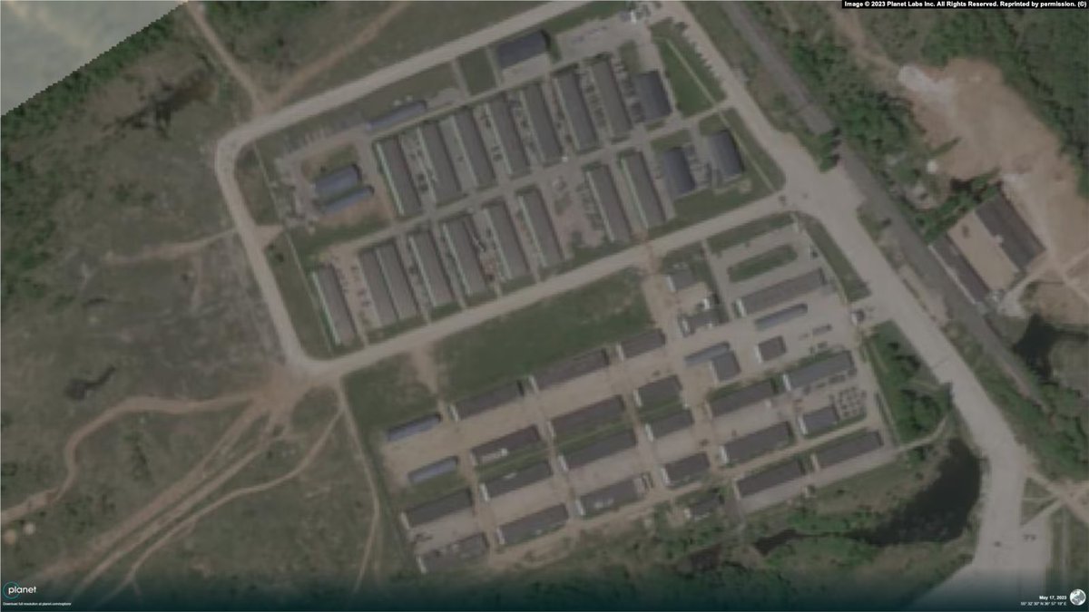 We were able to confirm from Dragan's account of the trip and images he provided that he was taken to the Alabino military training ground just west of Moscow (55.542528, 36.956778). Satellite image of the camp by @planet, taken on May 17th, 2023.