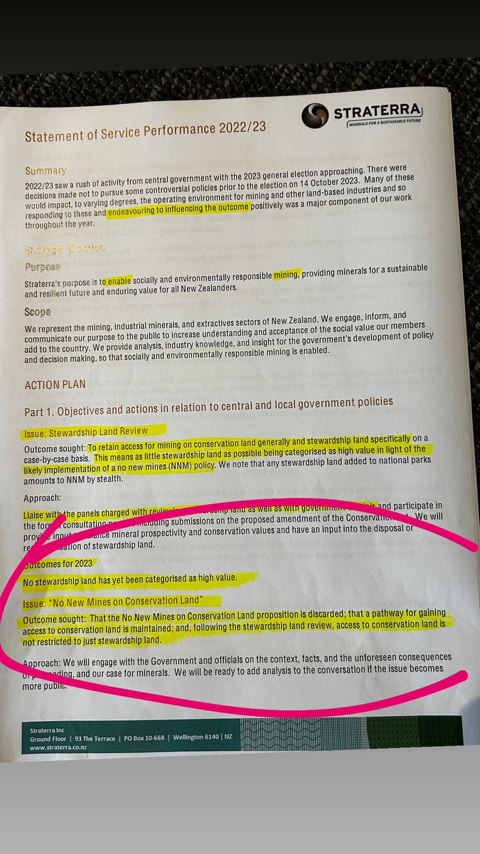 Straterra worked to undermine the popular call for no new mines on conservation land — and it seems they were successful because the Labour Government did not implement that policy.